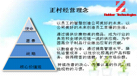 持续改善是公司的核心价值观,是企业的终极信念,是最基本、最重要、退无可退的底线,它就像公司经营理念这座金字塔的基石,支撑着公司的战略、愿景和使命。